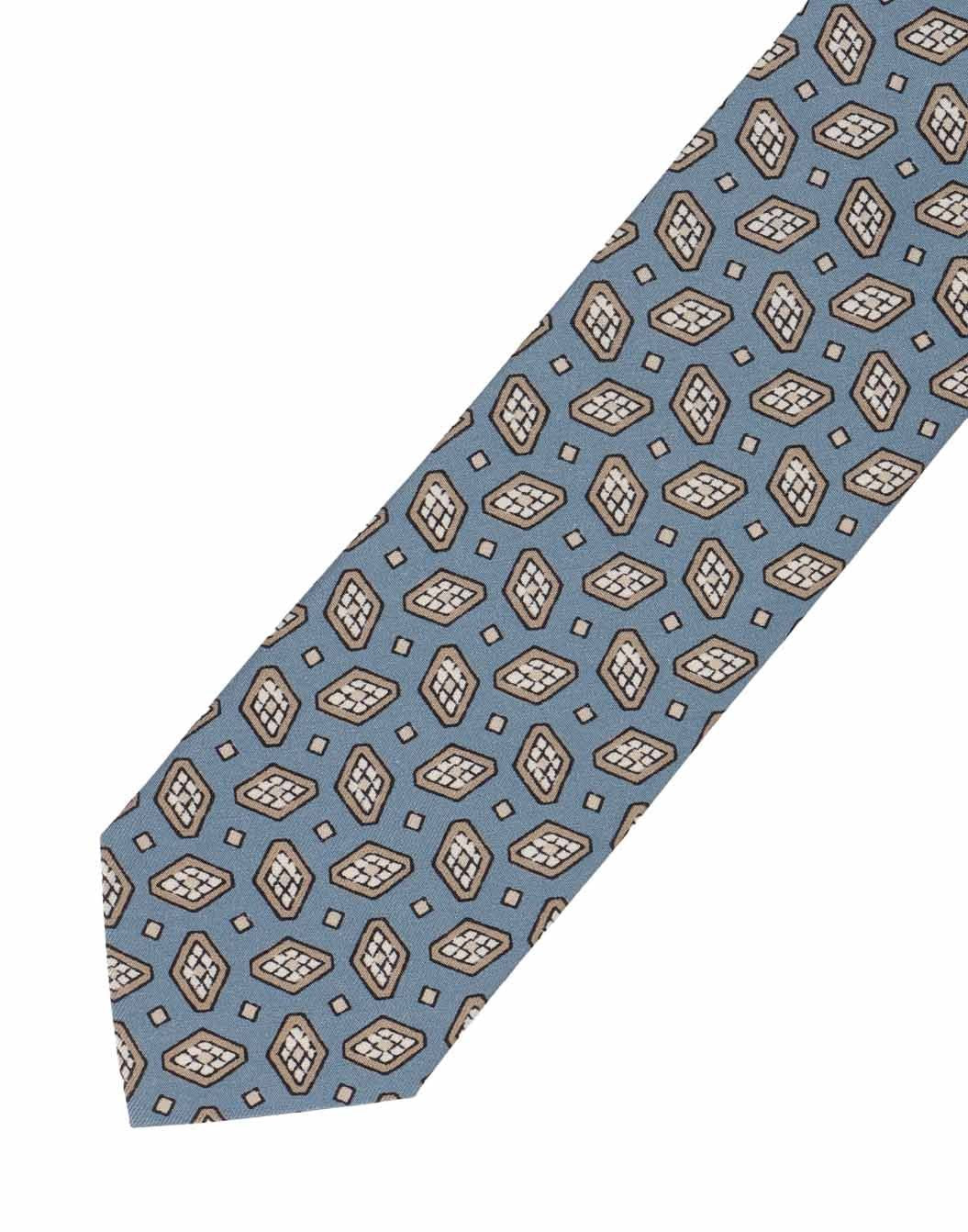 ダイヤ柄プリントがクラシックな洒落感を添えるネクタイ。ウールにシルクをブレンドした素材は、軽さとしなやかな艶を併せ持ち、結び目の表情も上品に決まります。やや細身の大剣幅で、スーツスタイルにほどよいアクセントをプラスしてくれます。