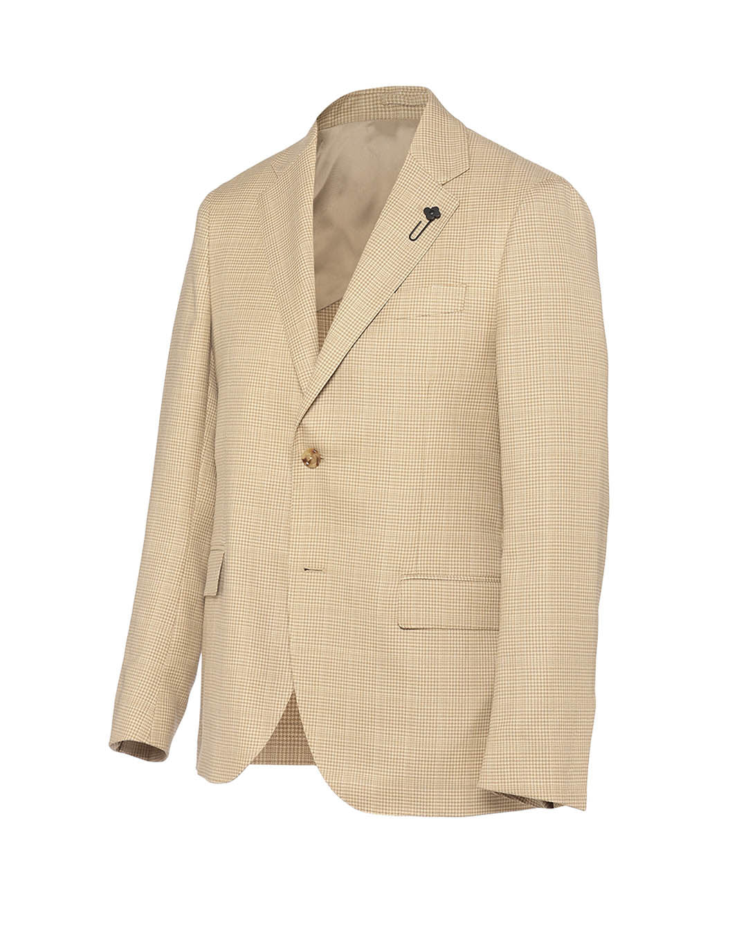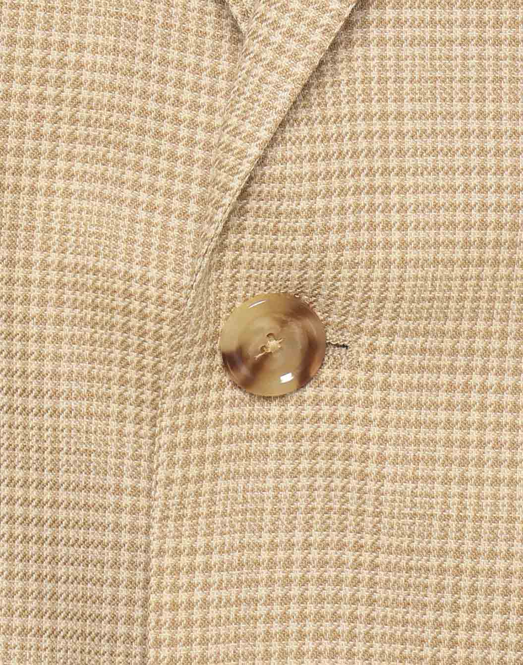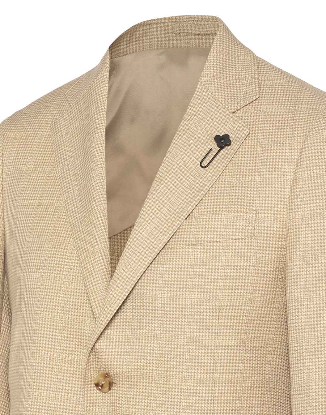 ラルディーニのために織られたエクスクルーシブ生地を使用した、ハウンドトゥースチェックのジャケットです。ウールのしなやかさにコットンの軽やかさを掛け合わせることで、奥行きのある表情と快適な着心地を実現しています。細やかな千鳥柄が繊細な陰影を生み、上品で落ち着いた印象に。シングル2つボタンの端正なフロントと、美しく構築されたシルエットがラルディーニらしい洗練を際立たせます。素材の質感と仕立ての精度が静かに宿る一着です。