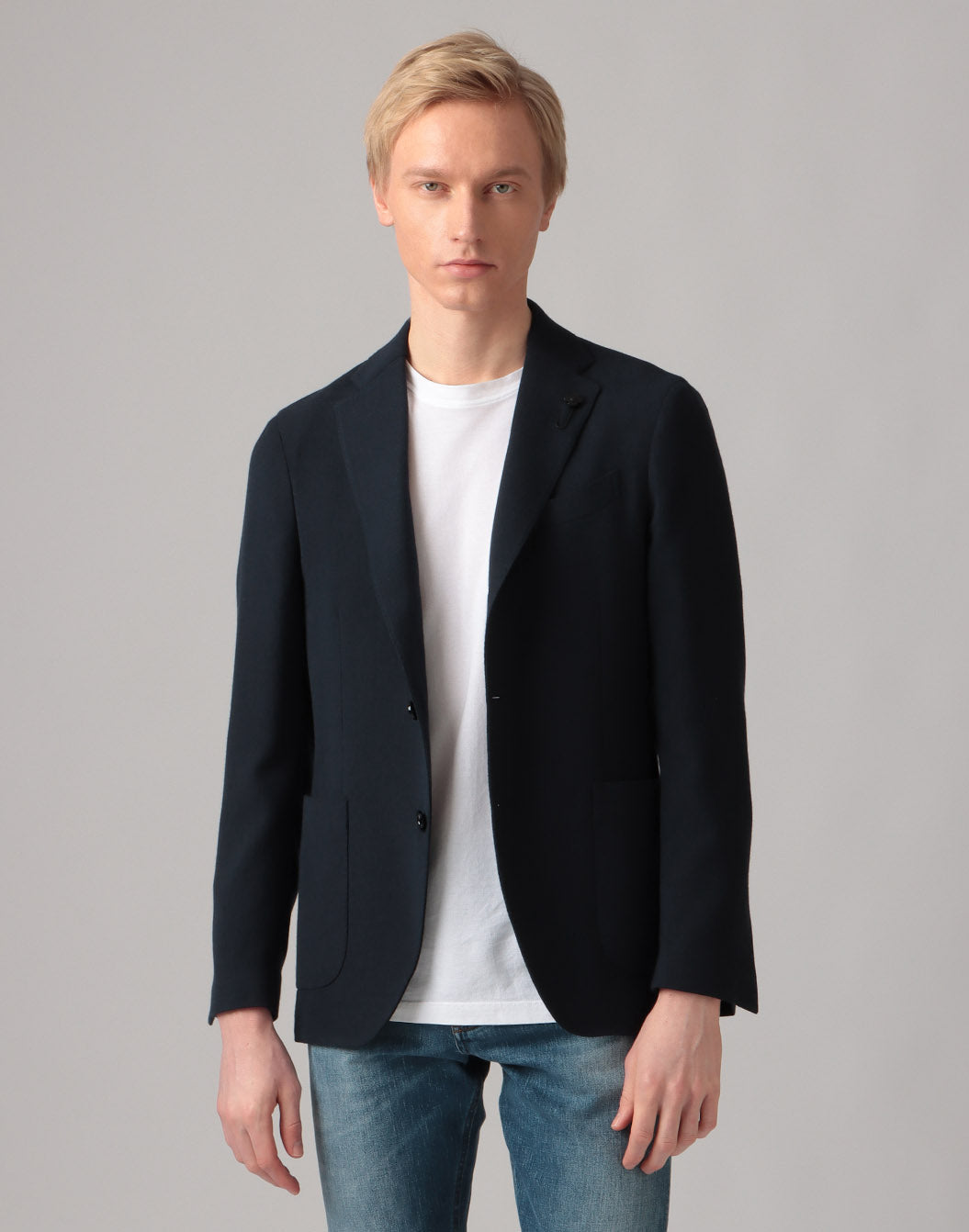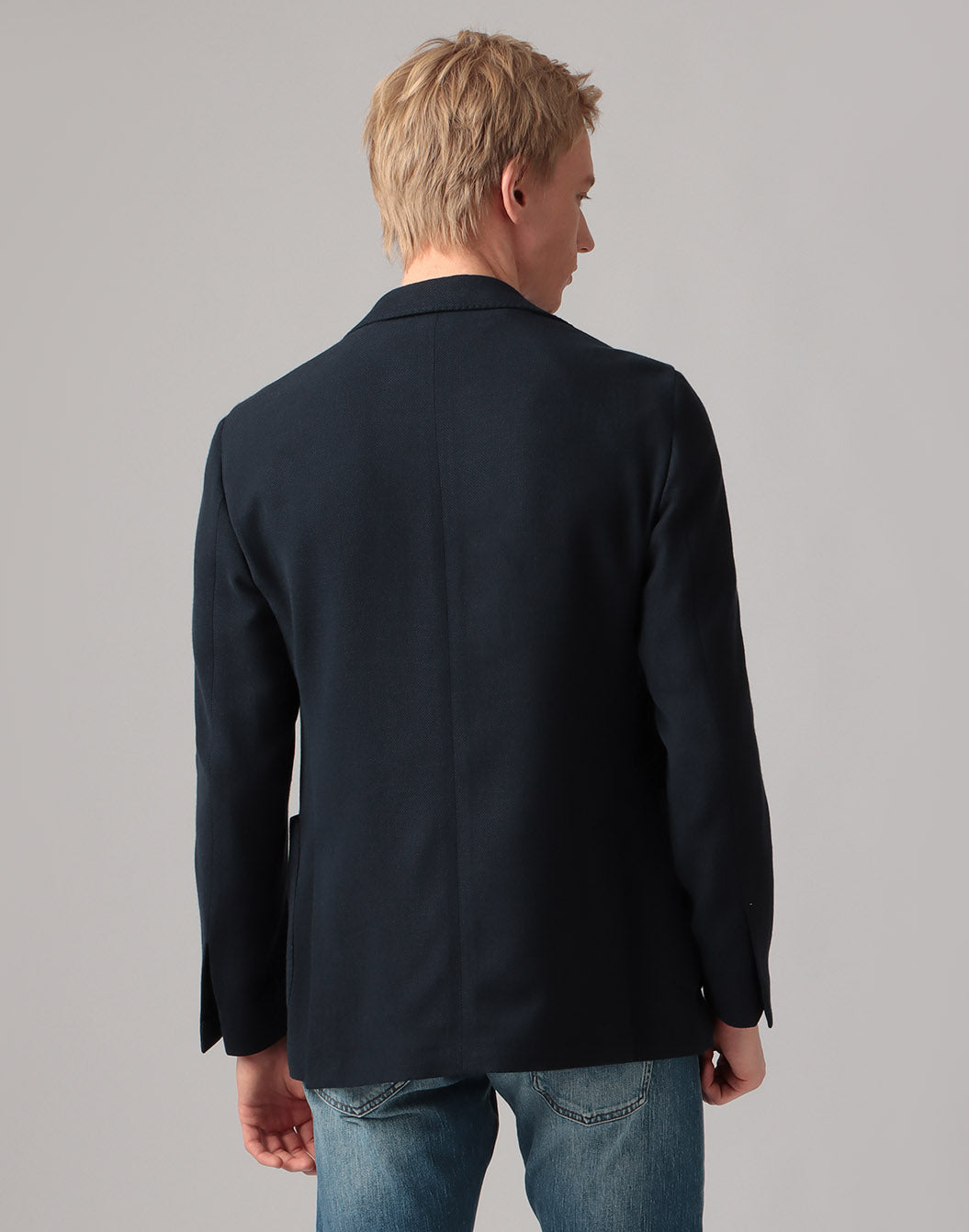 ジャケットの中でも最も定番的と言えるバスケットクロスジャケット。控えめな生地の凹凸感はウールのスラックスからデニムまで生地を選ぶことなく幅広いコーディネートに対応します。