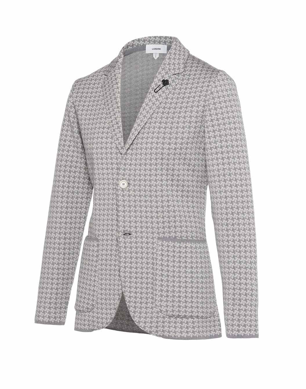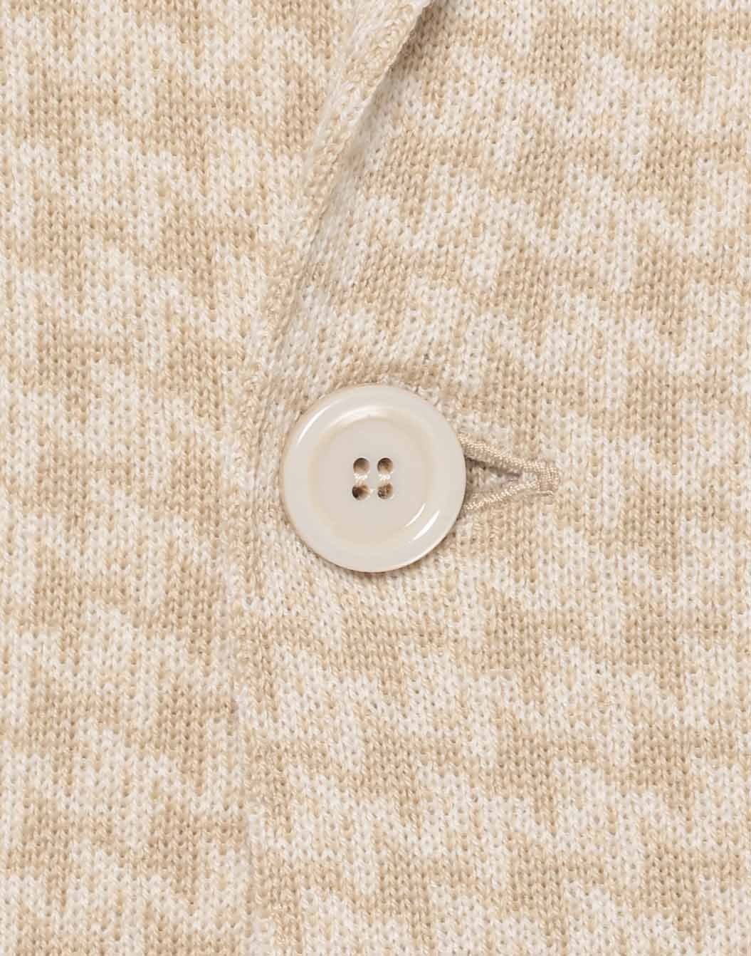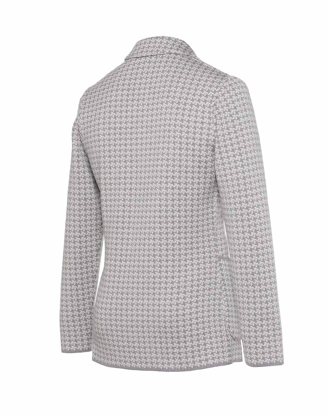 ハウンドトゥースチェックを軽快に表現した、メリノウールの12ゲージニットジャケット。クラシックな柄をモダンなスケールで再構築し、洗練された印象に仕上げています。ニットならではの柔らかさとストレッチ性で快適な着心地を実現しつつ、端正なシルエットが都会的なムードを演出。日常のスタイルにモダンなアクセントを加える一着です。