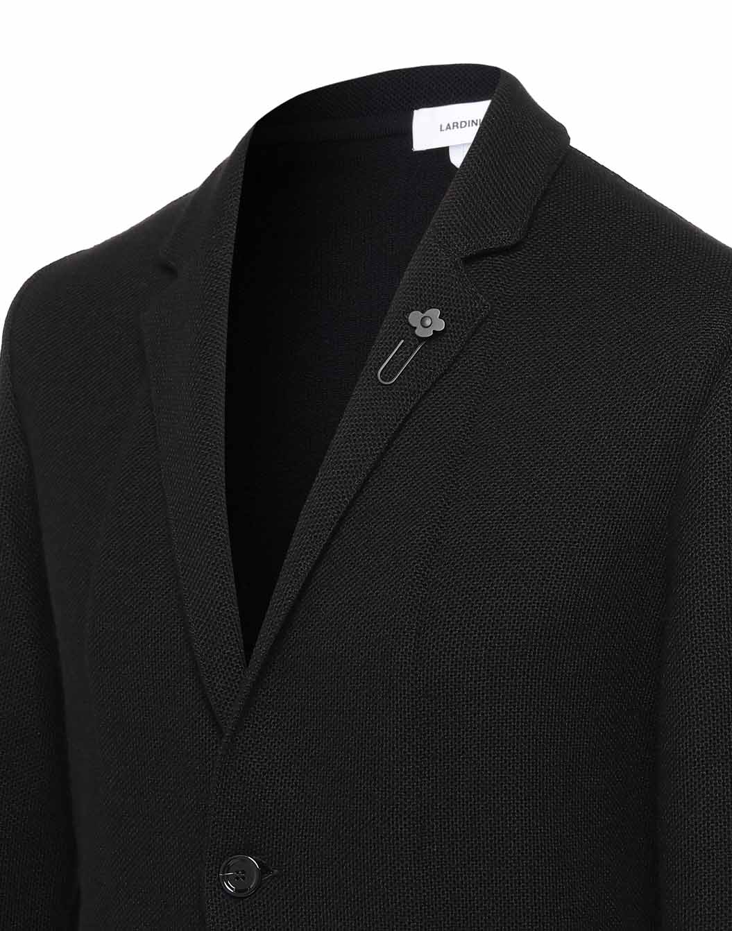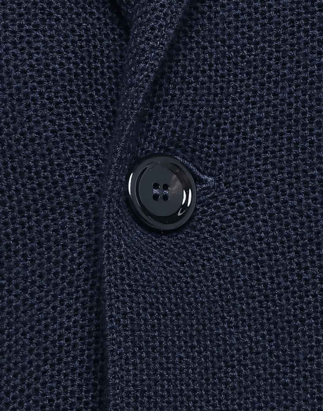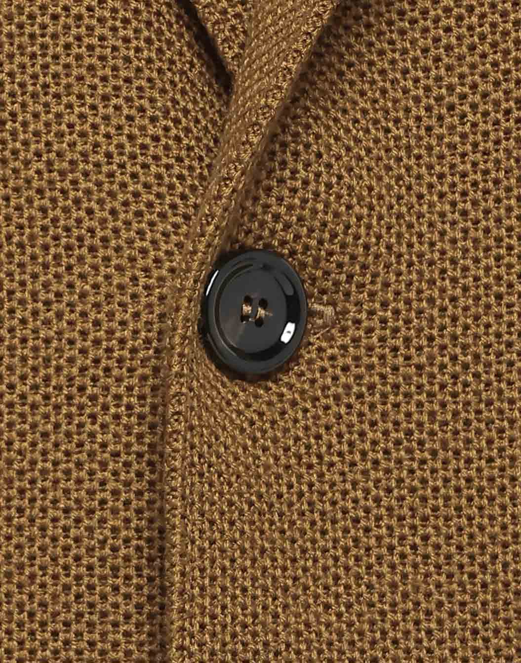 マイクロハニカムステッチの立体感が印象的なニットジャケット。細かな凹凸のある編地が空気を含み、適度な保温性と柔らかい表情を生み出します。12ゲージで編まれた程よい厚みの生地は、ウールにシルクとカシミヤをブレンドし、しなやかさと上品な光沢を兼ね備えています。ジャケットの品格とニットの快適さを両立した、幅広いシーンで活躍する一着です。
