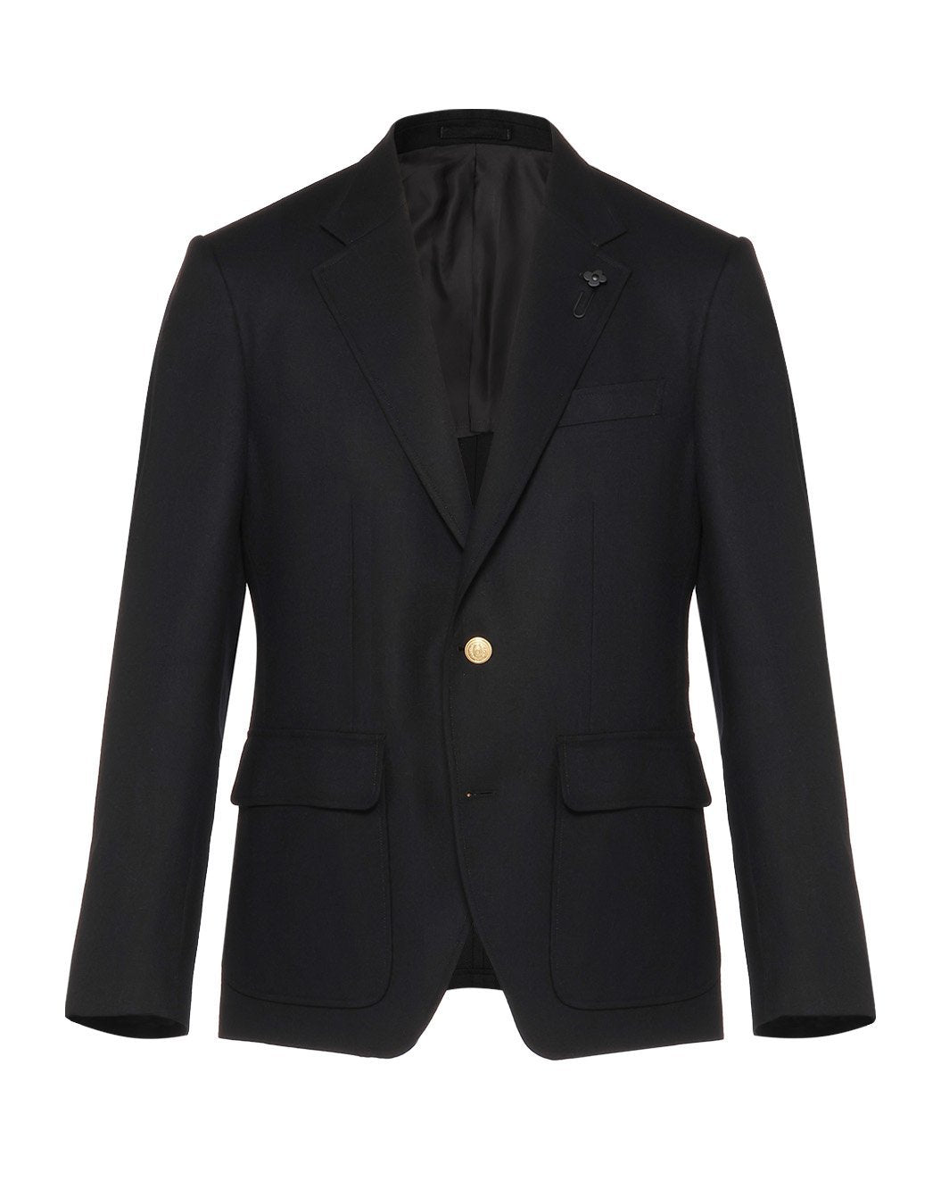 滑らかでクリアな表情を持つ上質ウール生地で仕立てられたブレザー。フラットな組織感が際立つ生地は、端正でエレガントな印象を演出し、洗練された大人の装いにふさわしい仕上がりです。シングル2Bのミニマルなデザインに、フラップ付きパッチポケットが程よい存在感を添え、クラシックな佇まいを引き立てます。金色のメタルボタンがアクセントとなり、上質さと華やかさを兼ね備えたブレザーです。