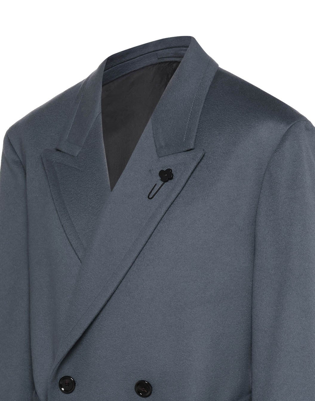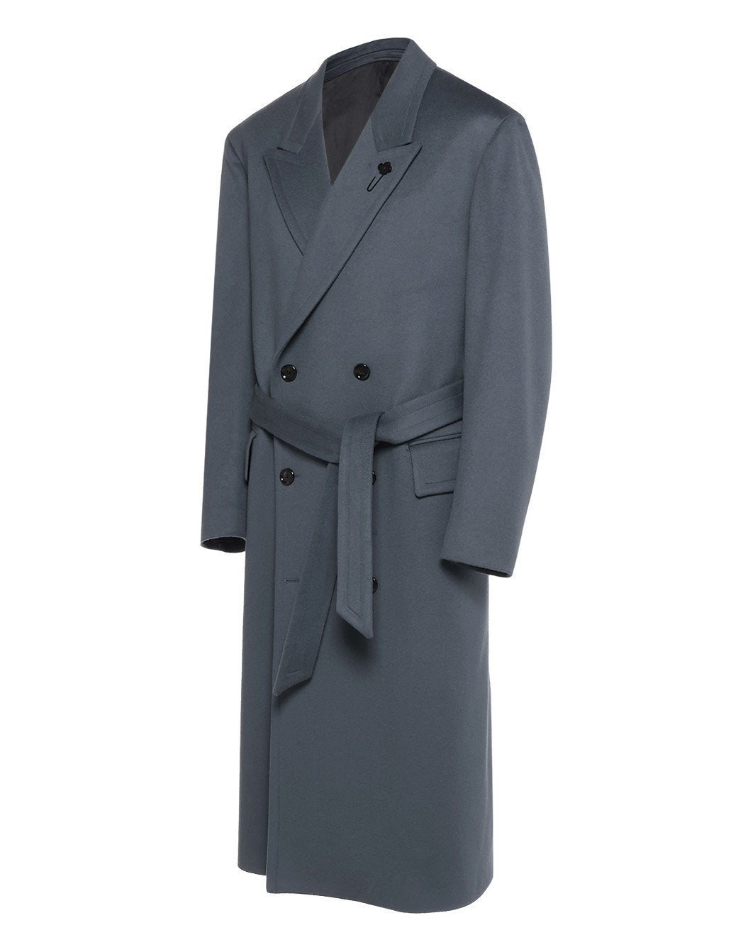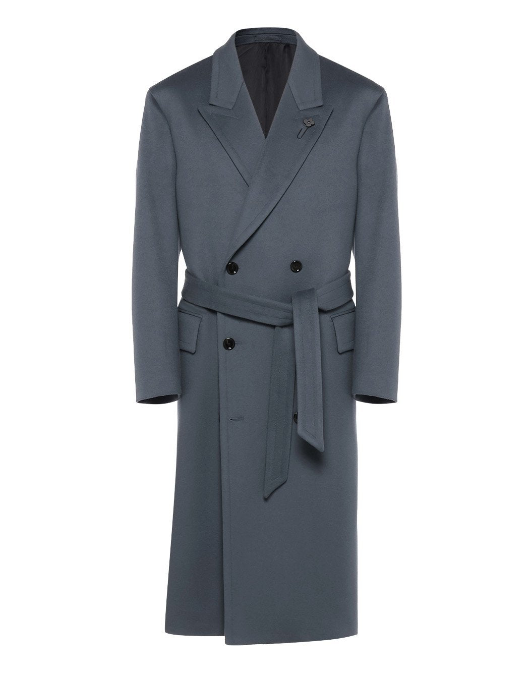 ウールビーバー生地を贅沢に用いたダブルブレストコート。きめ細かな起毛が生む豊かな光沢と柔らかな手触りは、まさにラグジュアリーの極み。低めに配したボタン位置と共布のウエストベルトが、エレガントなシルエットを引き立てます。膝下まで届くロング丈が風格を漂わせ、着る人の存在感を格上げする一着です。