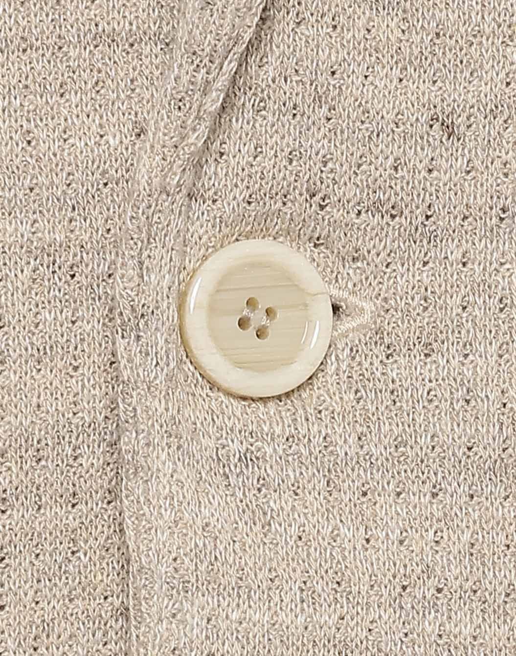 リネンの清涼感とコットンの柔らかさを掛け合わせた、12ゲージのニットジャケットです。リブニットによる立体的な編み地が繊細な陰影を生み、奥行きのある表情を演出します。リネン特有のドライなタッチにコットンのしなやかさが加わり、軽やかで快適な着心地に。フロントはシングル2つボタン仕様で、端正さとリラックス感を兼ね備えたバランスに仕上げています。素材の風合いと編みの美しさが際立つ一着です。