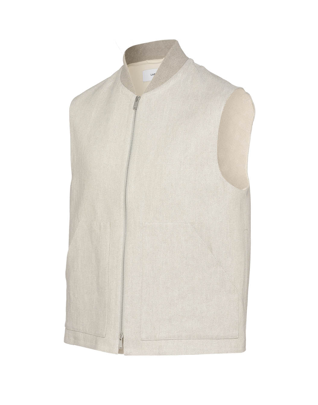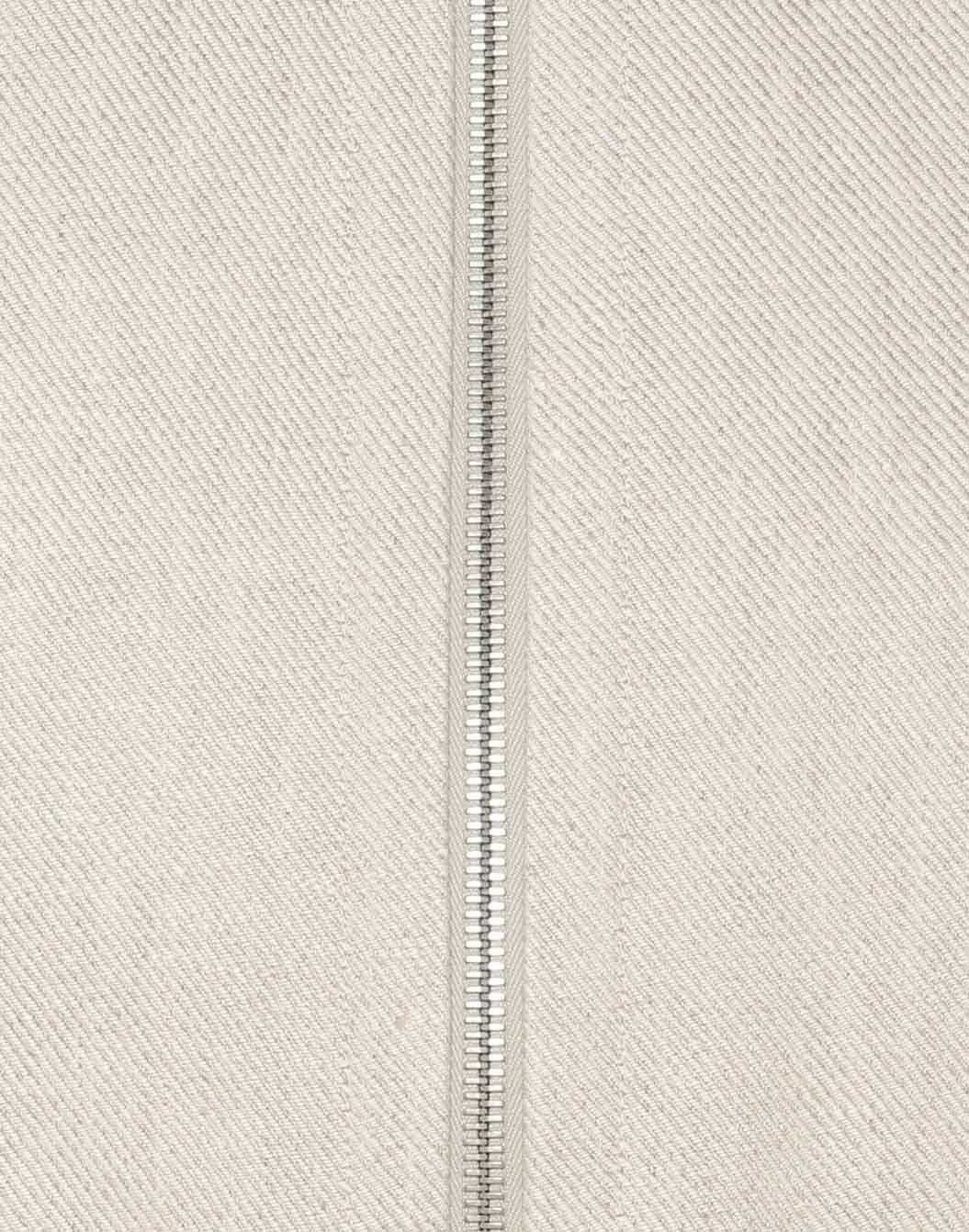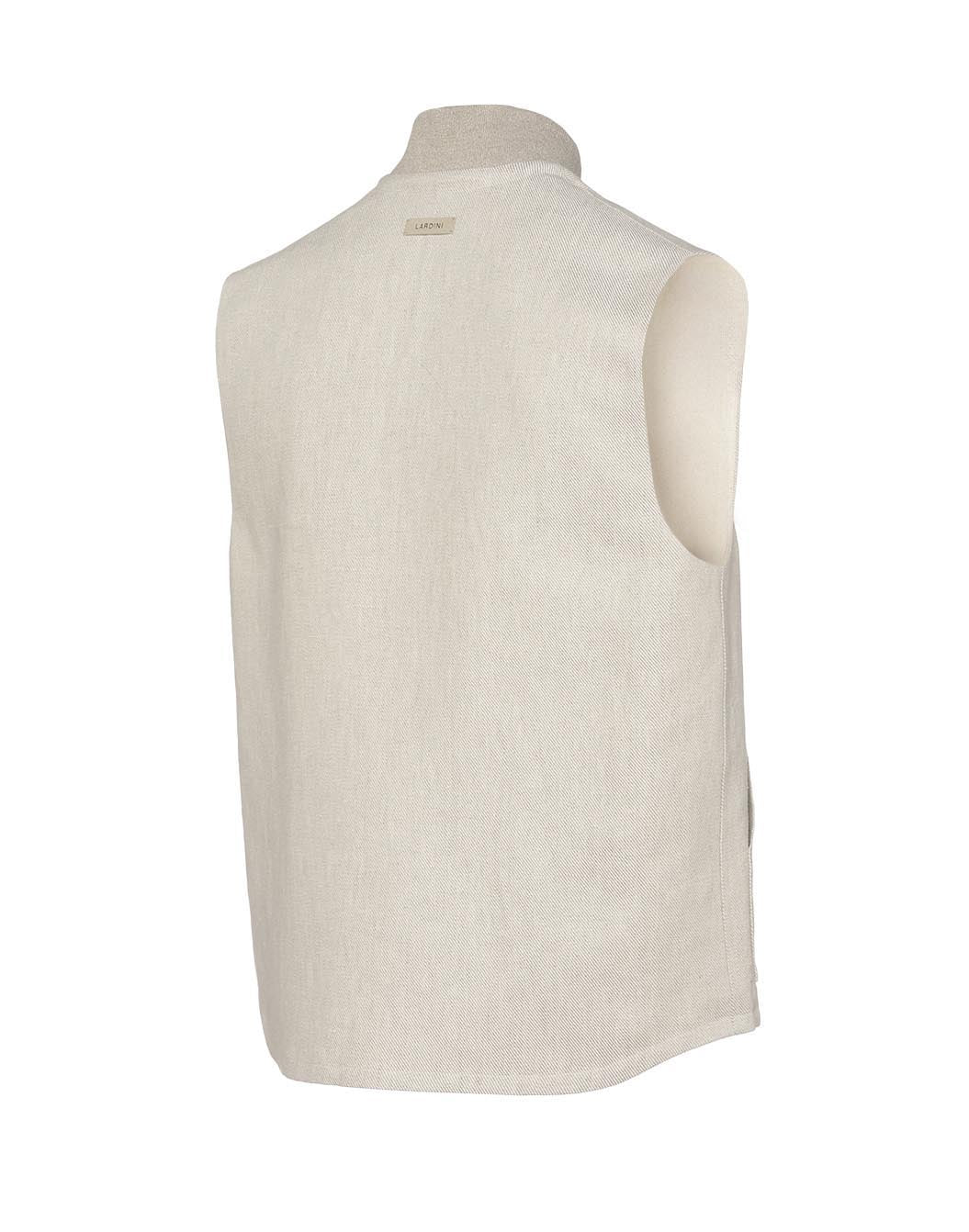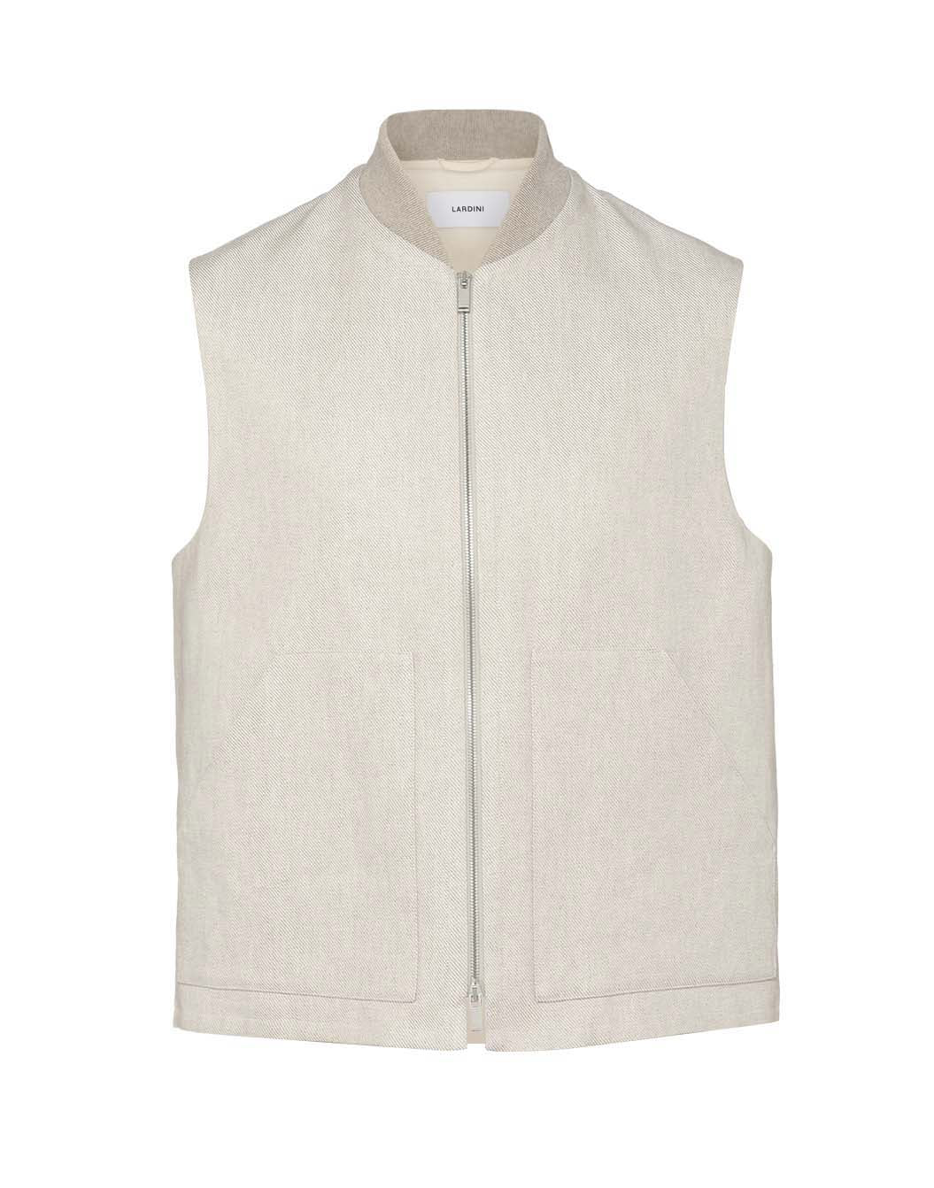 上質なローリネンを使用した、ノースリーブジャケットです。ダイヤゴナルの織りが生む繊細な綾目が、無地でありながら奥行きのある表情を演出します。リネン特有のドライなタッチと軽やかな風合いが、清涼感ある着心地を実現。首元はニットボンバーカラーを採用し、スポーティーさの中に上品さを添えています。フロントはダブルスライダージップ仕様で、着こなしのアレンジにも対応。軽快さと洗練を兼ね備えた一着です。