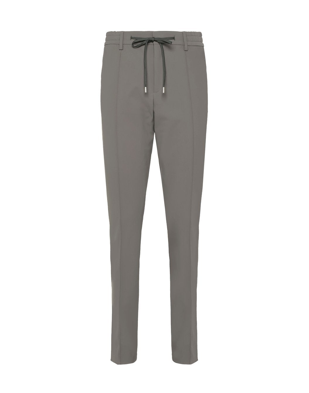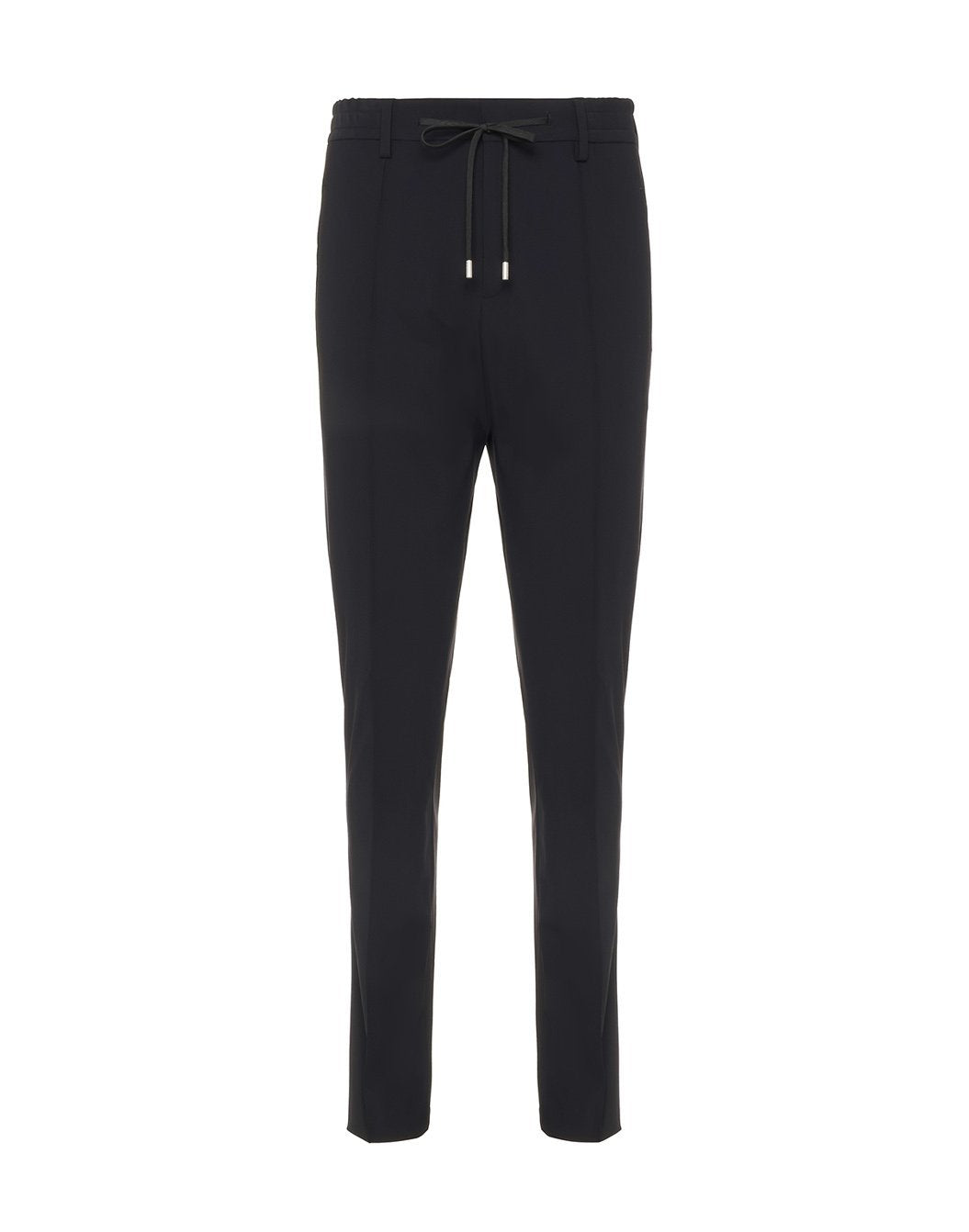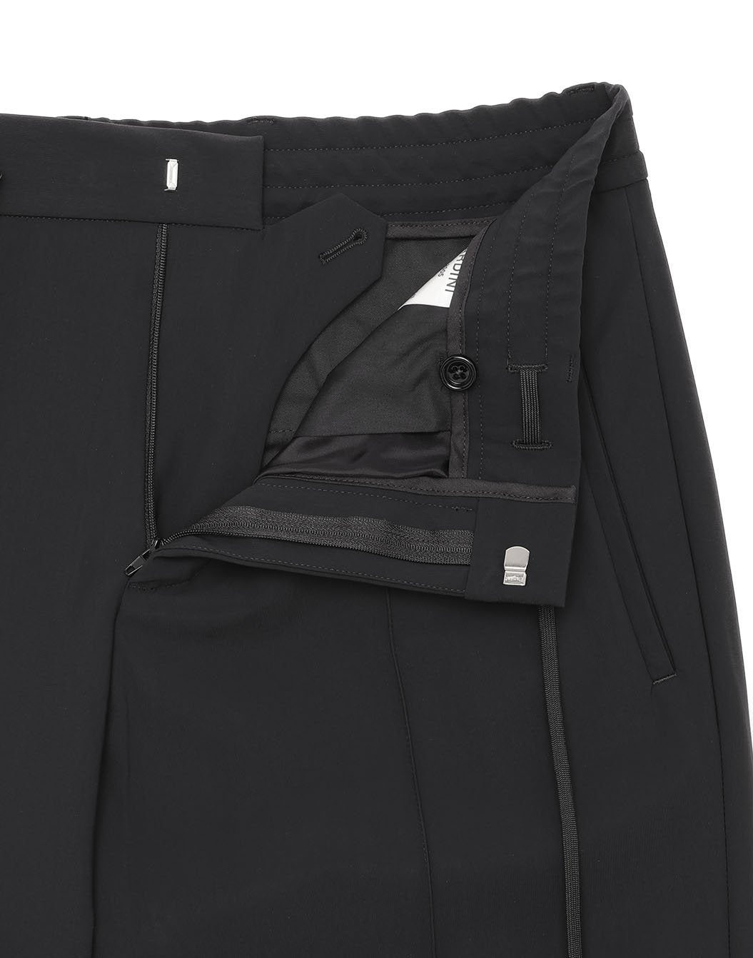 ラルディーニのブラッシュドテックジャージーを用いたトラウザーズ。ナイロンにポリウレタンをブレンドした素材は、滑らかな肌触りと高いストレッチ性を兼ね備えています。ウエストはフルシャーリングにドローコードを備え、リラックスした穿き心地を実現。センタークリースステッチによる美しい脚線と、都会的で洗練された雰囲気を併せ持つ、オンオフ兼用の一本です。