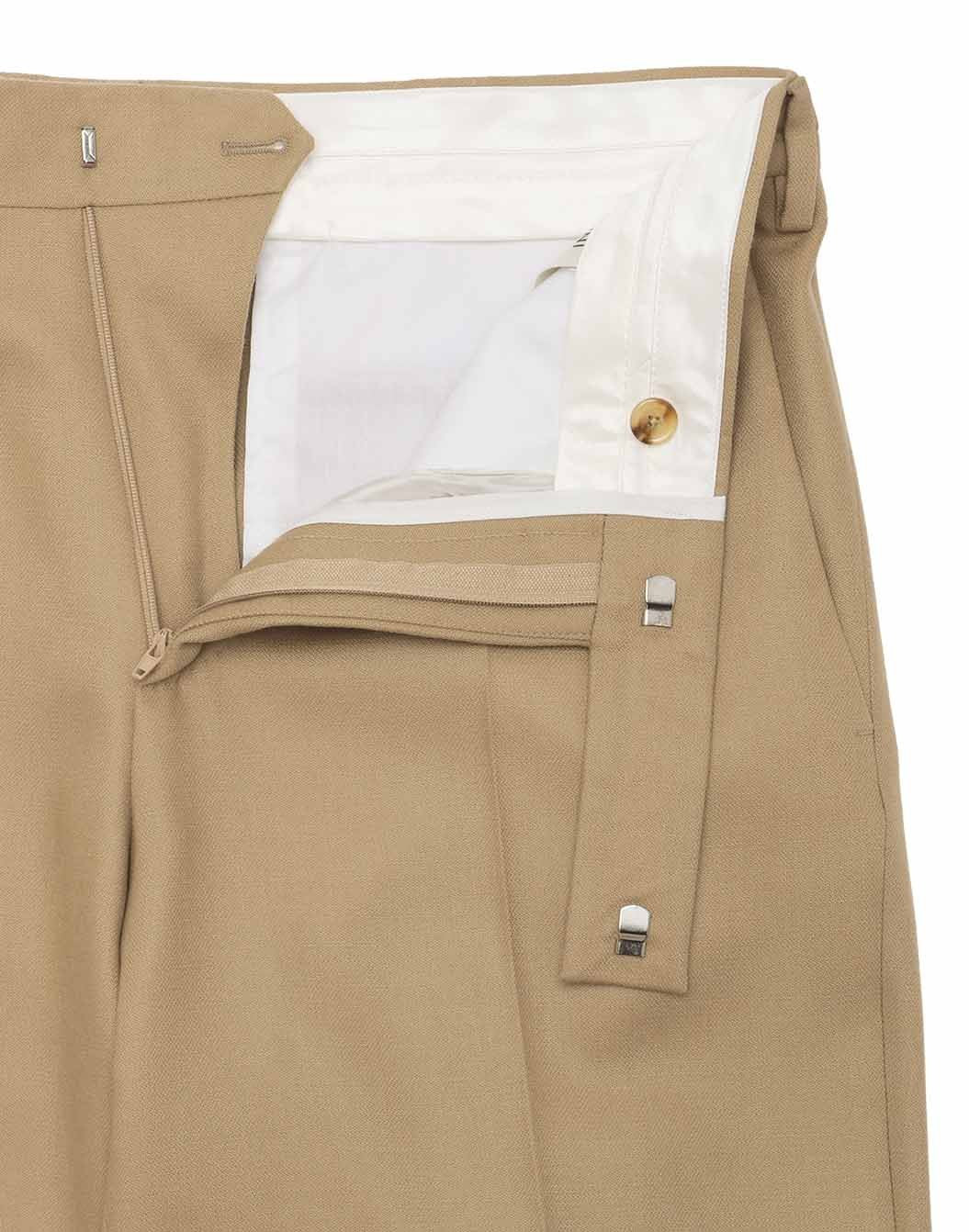 滑らかでクリアな表情を持つ上質ウール生地で仕立てられたトラウザーズ。フラットな組織感が際立ち、端正でエレガントな印象を漂わせます。シルエットはミニマルに整えられており、洗練された大人の装いを引き立てる一本。単品としてはもちろん、同素材のジャケットと合わせれば、統一感のあるスタイルを完成させることができます。