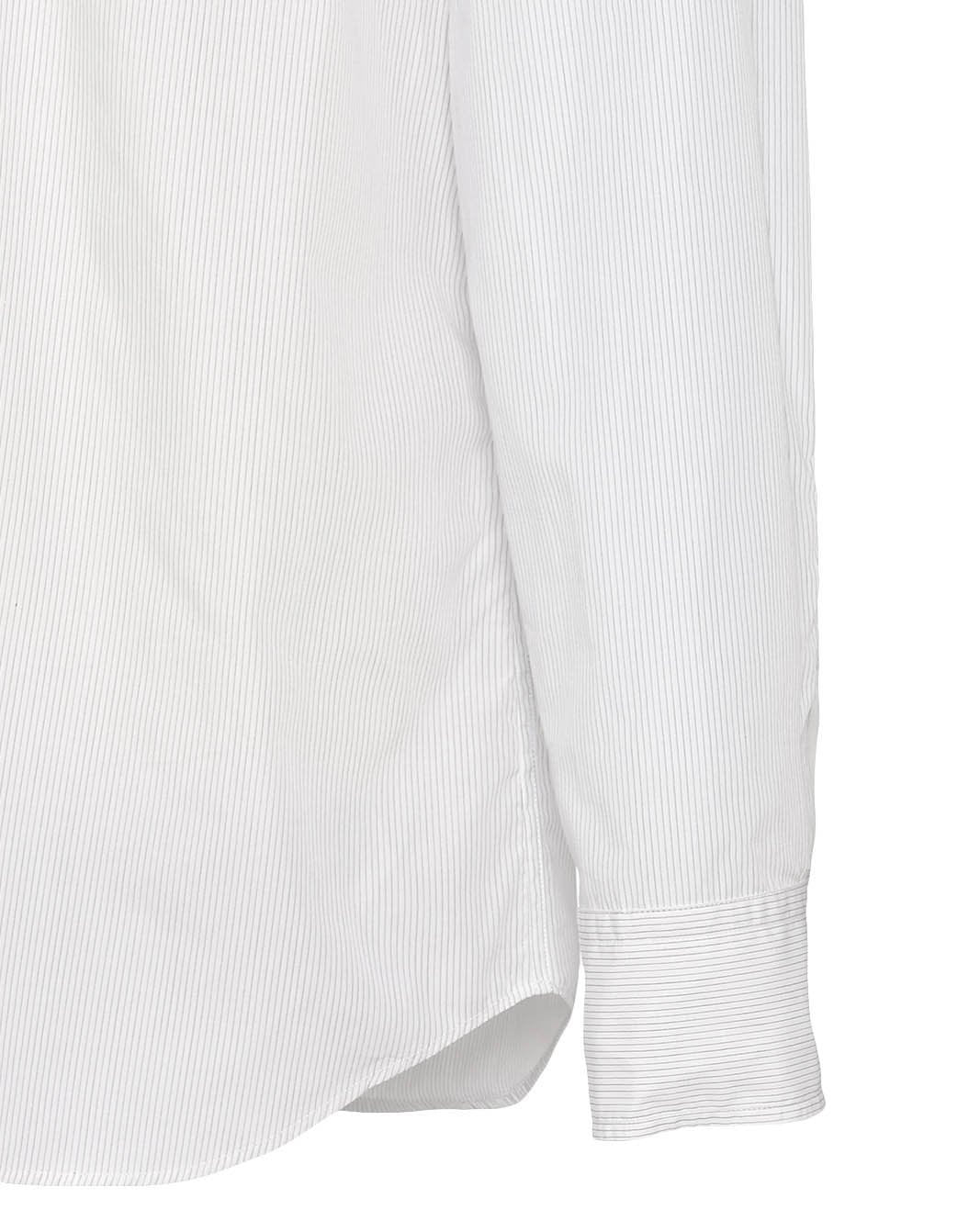 上質なコットンを使用した、端正な佇まいのヘアラインストライプシャツです。極細のストライプがさりげない奥行きを生み、無地にはない繊細な表情を演出します。襟元は立体的なカッティングが特徴のイタリアンカラーを採用し、首まわりを美しく引き立てながら柔らかな抜け感を加えています。身体のラインに自然に沿うバランスの取れたシルエットが、ラルディーニらしい洗練を静かに感じさせる一着です。