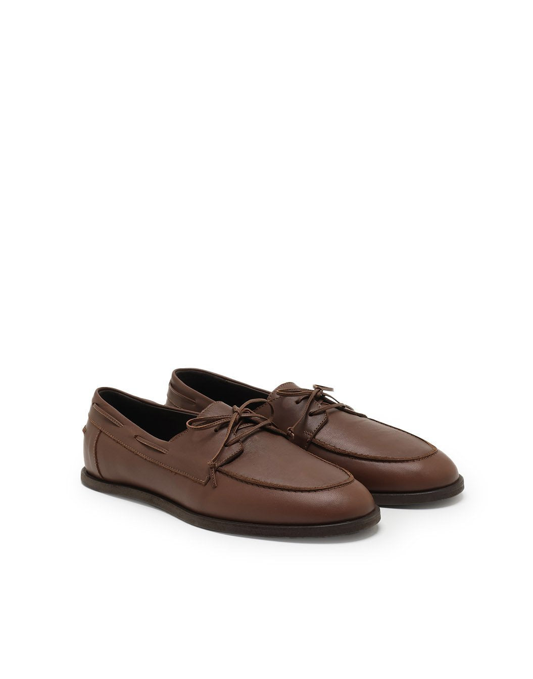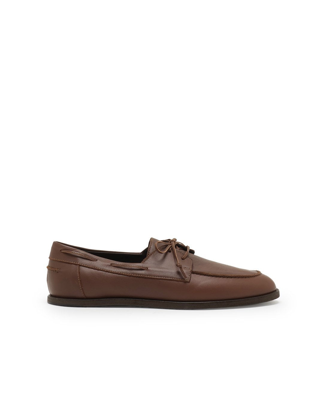上質なカーフレザーを使用した、レースアップタイプのデッキシューズです。きめ細やかでしなやかな牛革が、足元に落ち着いた艶と品格をもたらします。甲部分はモカ縫いを施し、クラシックなデザインに程よい立体感をプラス。レースアップ仕様によりフィット感の調整も可能です。軽快さを備えながらも上品さを損なわない佇まいで、リラックスしたカジュアルからきれいめなスタイルまで幅広く活躍する一足です。