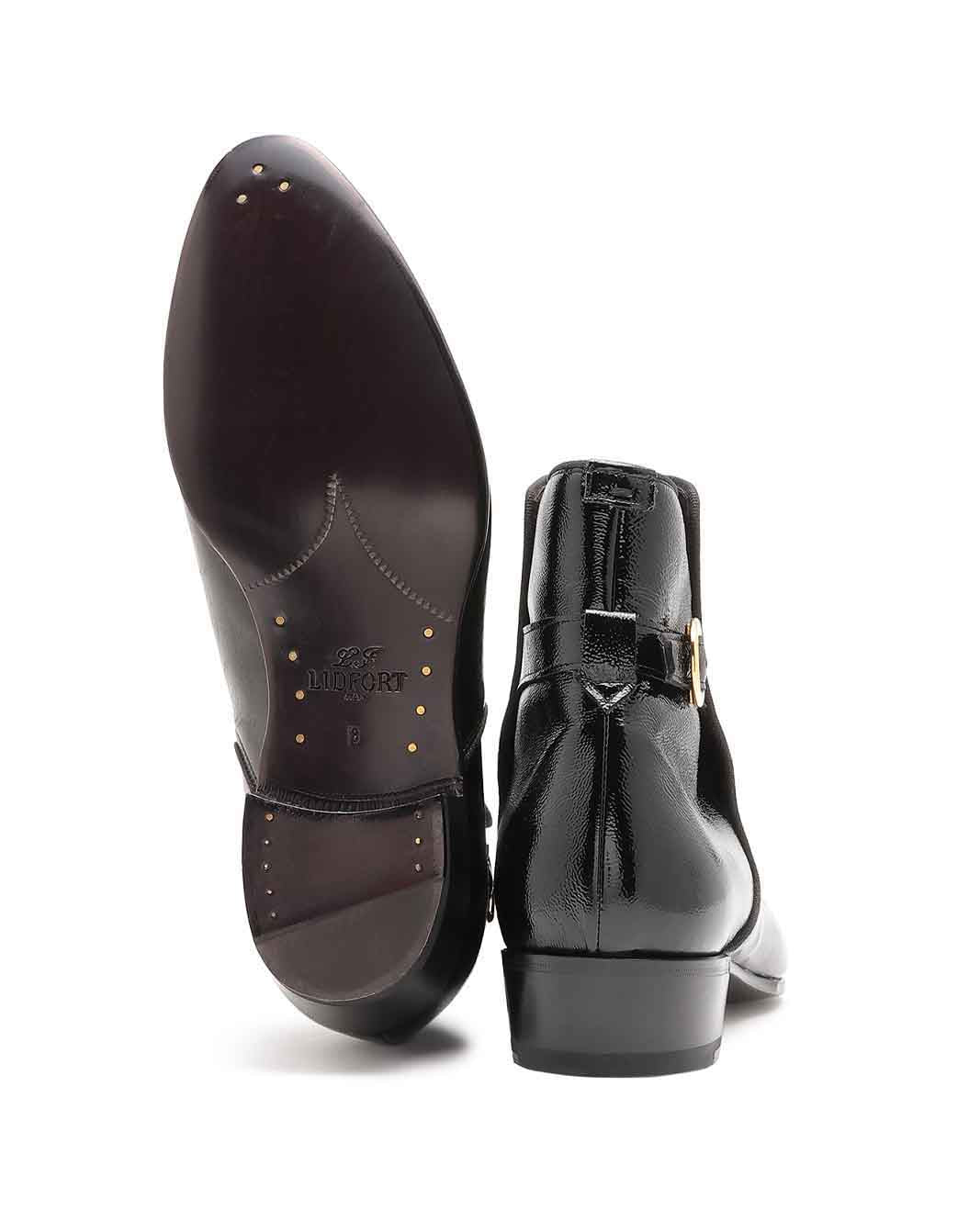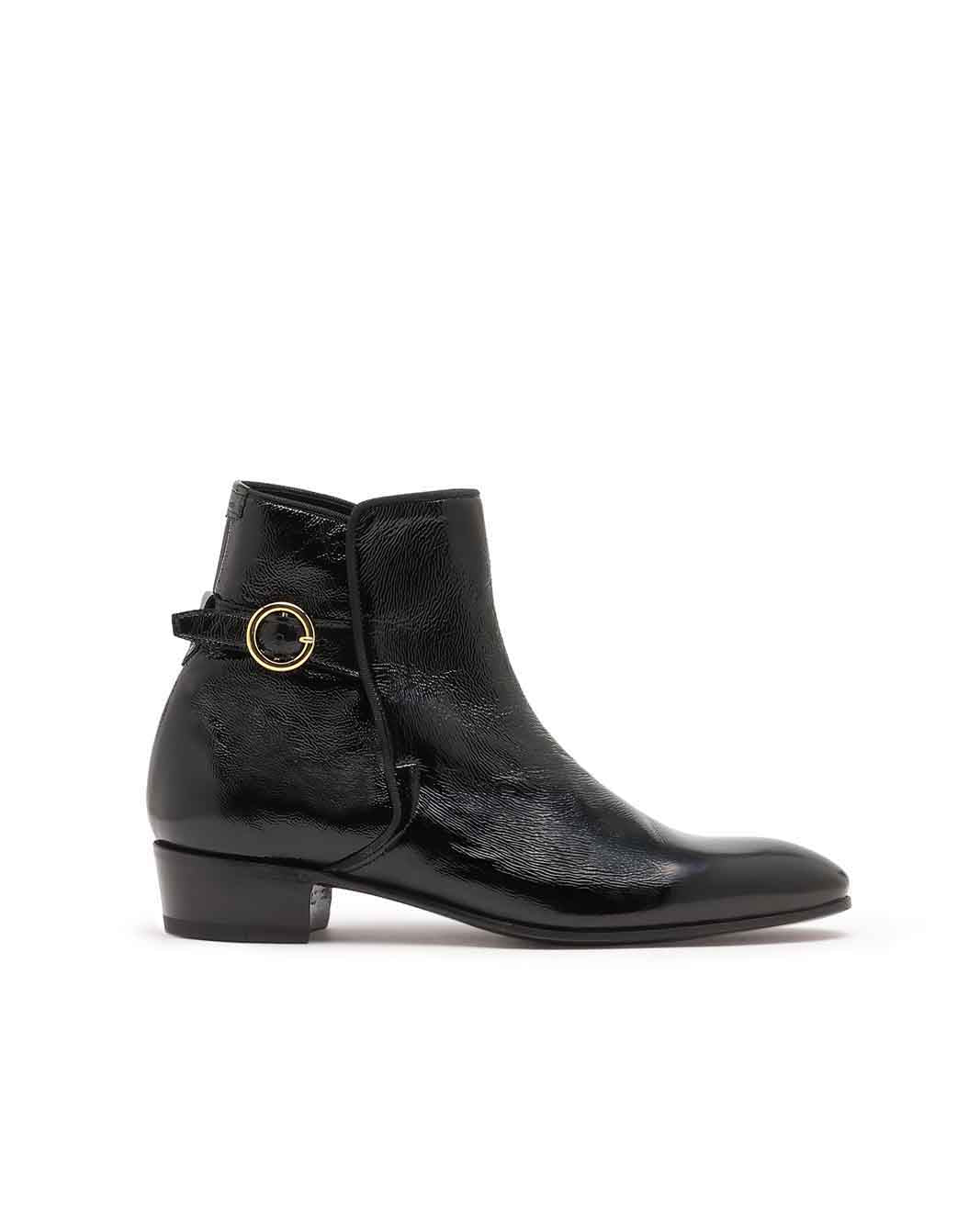 エナメルレザーバックルアンクルブーツ